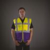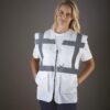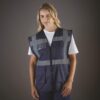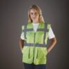 100% polyester. Bandes réfléchissantes de 5 cm de large autour du corps et une sur chaque épaule. Poche pour téléphone portable ou talkie-walkie à l’avant, côté gauche. Fermeture zippée sur toute la longueur. Deux poches inférieures avec rabats accessibles sur le haut et sur le côté, poches pour crayons et porte-clés, poche pour papiers d’identité côté droit, grande surface à l’arrière pour la décoration. Conforme à la norme : – EN ISO20471:2013 catégorie 2 : uniquement Hi-Vis Yellow, Hi-Vis Orange et Hi-Vis Yellow/ H-Vis Orange. – EN ISO20471:2013 catégorie 1 : uniquement Paramedic Green/Hi-Vis Yellow, Royal Blue/Hi-Vis Yellow, Red/Hi-Vis Yellow, Hi-Vis Yellow/Black, Hi-Vis Orange/Black, Hi-Vis Yellow/Navy, Hi-Vis Orange/Navy, Hi-Vis Yellow/Grey, Orange/Grey et Yellow/Purple. – EN 1150:1999 PASS : uniquement Lime. Entretien : lavage à 40° C, blanchiment interdit, repassage interdit et séchage en tambour interdit.