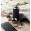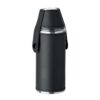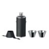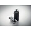 Bouteille en acier inoxydable avec surface en cuir PU et 2 gobelets en acier inoxydable de 20ml dans le couvercle. Capacité : 230ml.