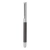 Parure stylo à bille et roller en métal, avec motifs en carbone sur le corps et attributs chromés brillants. Livrée dans un coffret noir cadeau. Encre bleue. Produit de la marque André Philippe. Matieres : : Métal.