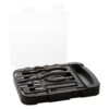Set d’outils en mĂ©tal – 22 pièces – dans une valise en plastique. 2 tournevis, 1 pince, 1 support pour mèches, 2 clĂ©s Allen (clĂ© hexagonale), 5 douilles de serrage interchangeables et set de 10 mèches. Matieres : : Plastique , MĂ©tal.