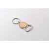 Porte-clés décapsuleur en métal avec détails en bambou.